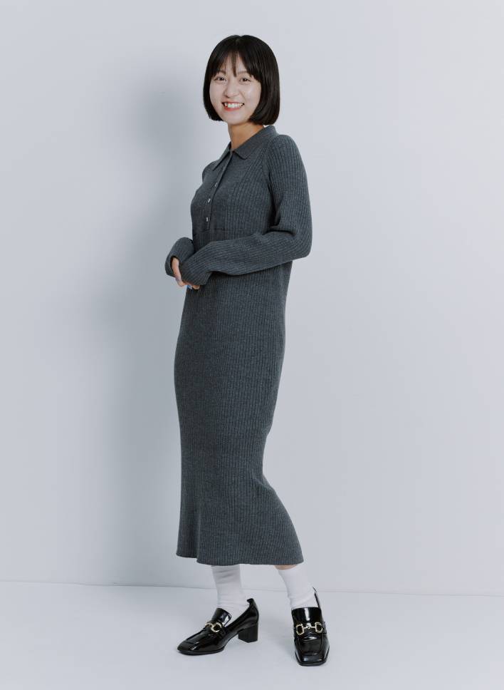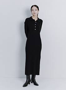 体に沿うリブ素材のニットポロワンピース。ボディラインが出すぎない? という心配はご無用。程よく肉厚素材だから体にフィットしすぎず、リブの縦ラインが体をほっそり見せてくれます。さらに胸元はヨークラインで切り替えられているので、目の錯覚で上半身がコンパクトに見える効果も! 深めに入ったスリットで足さばきよく、後ろ姿も美しくきまります。