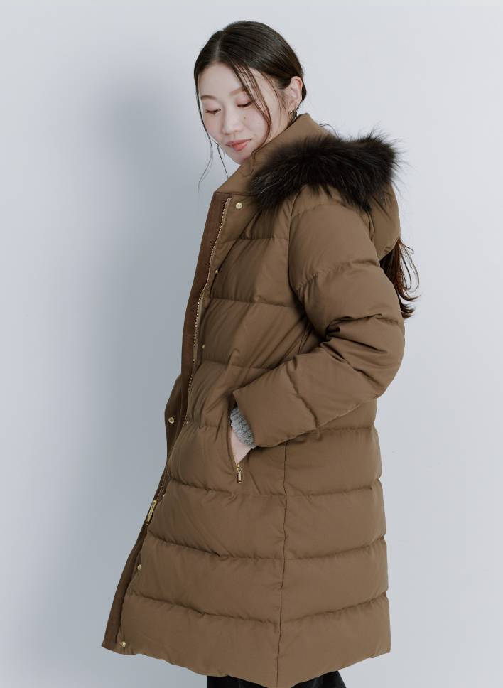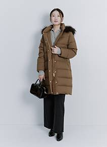 暖かさと引き換えに着膨れするのがダウンの宿命と思いきや、着たほうがむしろやせて見えるダウンを発見! やや細身の身幅と膝上丈の縦長シルエットで、羽織るだけですっきり見えが叶います。表地はマットな質感なのでダウンにありがちなスポーティ感も控えめ。フードとファーは取り外せるので、カジュアルからお仕事シーンまで真冬の相棒となることでしょう。