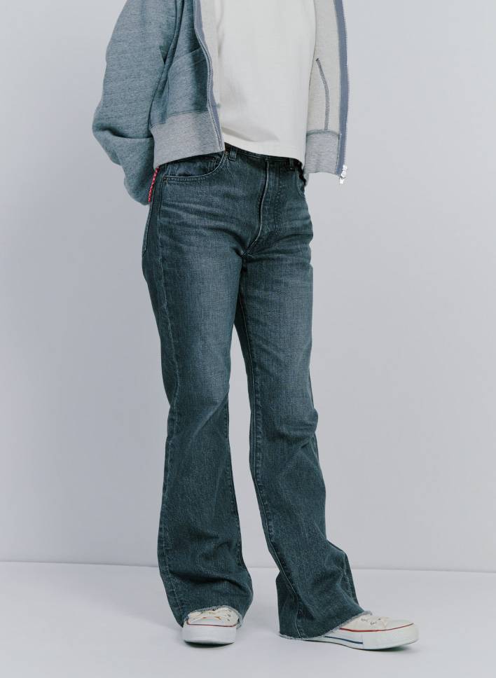 待望の〈ビームス ジャパン〉初のオリジナルデニムはフレアシルエットで登場。ヴィンテージ加工を追求し、色落ちや耳のあたりは、デニム好きにはたまらない仕上がりになっています。このデニムの推しポイントはいくつかありますが、ステッチ糸も生地と同じように自然と経年劣化していく特別な糸を使用してることは特出すべき点。デニムは育てるものと言いますし、自分だけのデニムとして1から育ててみるのもよさそうです。