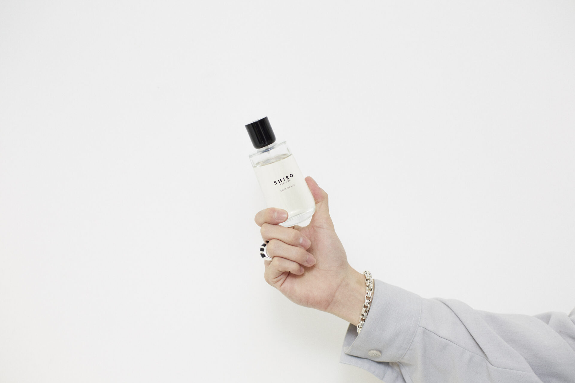 学生時代はサッカー一色で、日焼け止めクリームすら塗っていなかったのですが、女性ブランド担当という職業柄もあって、自然に美容情報に興味を持つようになり、昔の日焼けの影響で将来シミができたらどうしようと不安で、慌ててUVケアを始めました(笑)。コスメは、周りのスタッフにおすすめを聞いて実際にショップで試してから購入するのが大半。ただ、いわゆるメイクアイテムにはまだそんなに手を出せていなくて、フレグランスやヘアケアアイテムが中心です。ウッド系やローズ系のユニセックスな香りが好みなので、香りに惹かれて手に取って、気に入ったらリピード買いが定番。今回紹介した「SHIRO」のフレグランスは使い始めて半年ほどですが、既に2本目に突入しました。