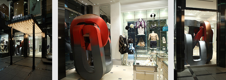 高さ2mを越す巨大な立体物が明治通りに面したファサードに出現しました。その彫刻作品の違和感や圧迫感は一瞬の緊張を生み出し、"これはナニ!?"と考え込む人や、理解を超えた現象にそこに何も存在しないかのように無視することで混乱から逃れるといった反応をする人など、様々なリアクションが見られました。