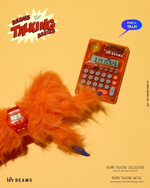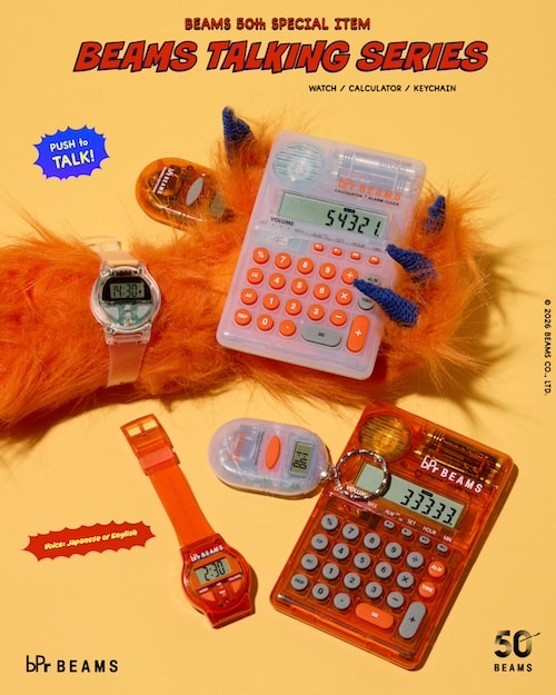 1996年の誕生から2001年まで展開し、2016年に一度復刻され長きにわたり愛され続けたbPr BEAMSのアイコンとも言えるアイテム 『BEAMS TALKING SERIES』が、10年の時を経てビームス50周年の節目に待望の復刻をいたします。 ボタンを押すと 「ただいま午後◯時をお知らせします」 と音声で時刻を案内するユニークなトーキング機能を搭載した本シリーズ。
