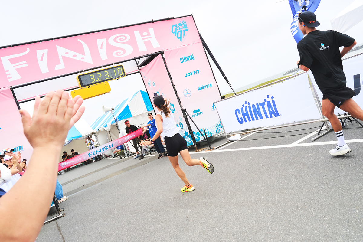 やっぱり沿道の人が多いと盛り上がりますよね。少ないところでも、地域の人たちと少しでも触れ合えるとうれしい。今日は給水ポイントでたくさんのかわいい子どもたちがいて、すごくほっこりしました。私はあまりエイドステーションに寄ることはないけど、その地元の食べ物を提供してくれるのは大会を選ぶポイントになります。例えば今日みたいに10kmだったら、5km走ったご褒美においしいもの食べて、また5km走れば終わり。と思えばテンション上がりませんか? マラソンは苦しい、辛いって思う人も多いけど、自分が体を動かした距離は、すごく自信になるし、前向きになれます。