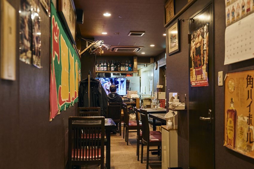 店内はおしゃれなバーの雰囲気。10人がゆったりと座れる奥のテーブルで、ワイワイつつく鍋は格別である。カウンターに座って、静かにお酒を楽しむのもまた一興。筆者が「本当は教えたくない店」であり、力士への取材・撮影でもお世話になっている。