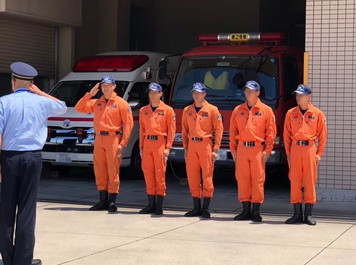 実際に火災を想定した訓練や、規律訓練と言って「気をつけ」や「休め」「敬礼」など、消防士特有のキビキビした動きを習ったり。体力錬成という筋トレをしたり走ったりと、体力をつける訓練をしました。知識も必要なので教科書を開いて座学を行ったり、そのテストがあったり。まだまだありますが、消防学校では本当にいろいろなことを学ばせていただきました。
