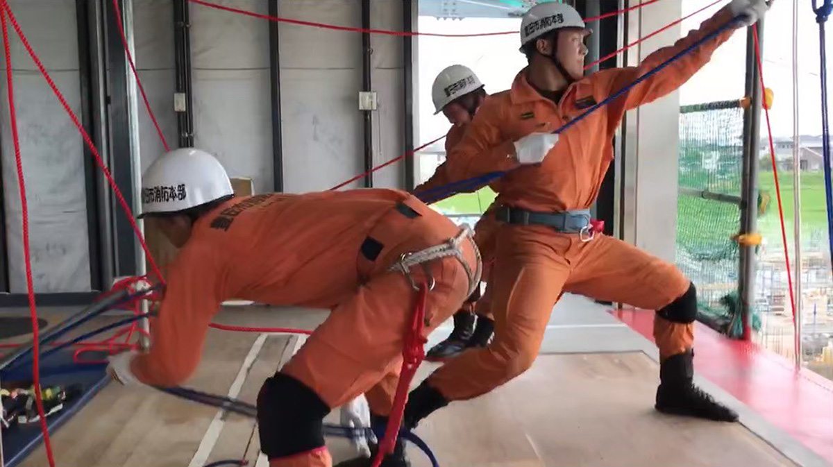 引揚救助は5人の隊員で行う種目で、高さ7mの塔の上から、地面にいる要救助者を的確に速く搭上まで救出するというものです。よく分からないと思うのですが、YouTubeで「引揚救助」と検索すると出てくるので、見てもらえると嬉しいです。