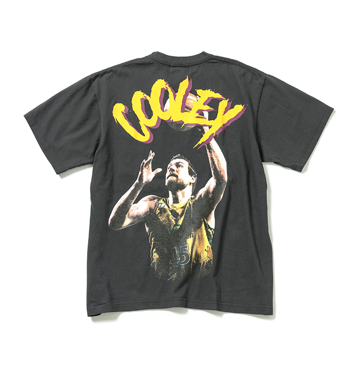 ジャック・クーリー選手をテーマにした半袖Tシャツ。背面に選手のグラフィックを大きくプリントし、印象的なデザインに仕上げています。ボディの染め方やプリント方法で特有のムラを表現しヴィンテージアイテムの雰囲気を演出。