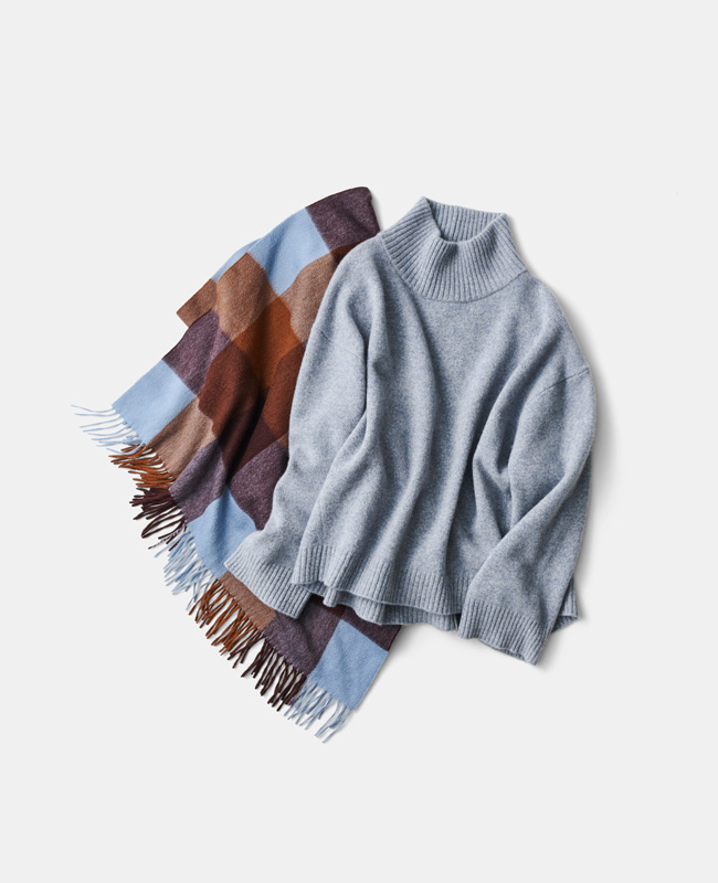 「上質ニットの信頼ブランドといえば、<SLOANE(スローン)>。定番のラムカシミヤのタートル、本当に暖かいんです。純血種の羊毛からしか採取できないラムウールを使っているそうで、もっちりと柔らかで、ボリューミーな風合いにも癒されます。‟いいニット”ってこういうこと、を実感できる名品」