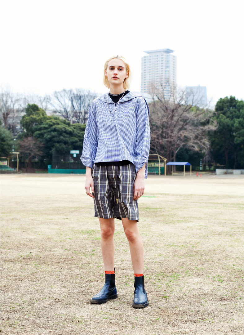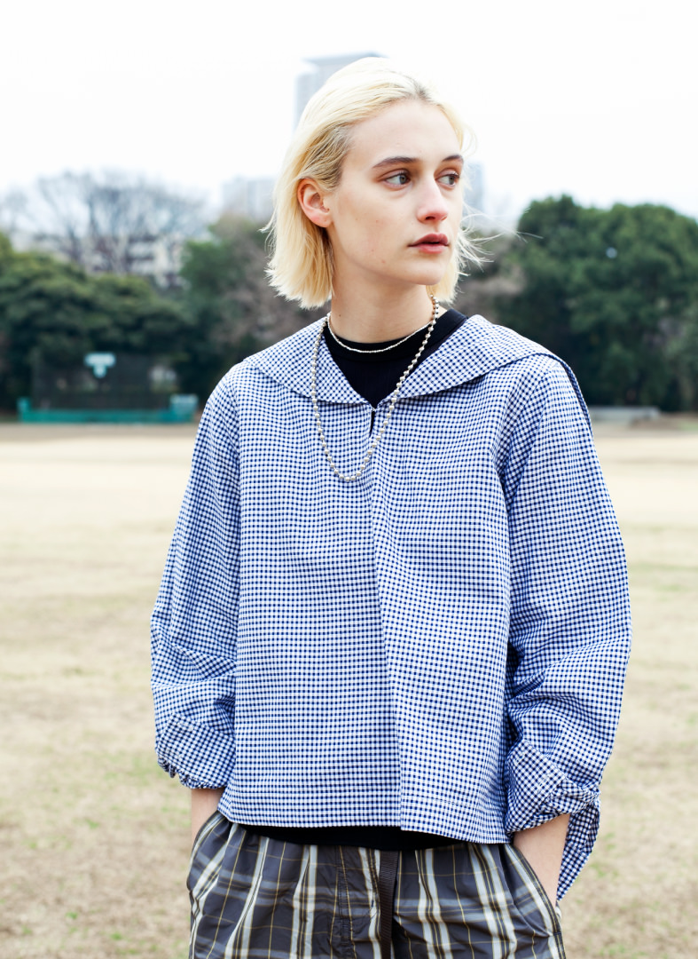 <BEAMS BOY>のもはや定番、セーラーカラーシャツの新作がリリース。生地はしっかりと厚みのあるオックスフォードで、素材にはコーマ糸を使用。よりクリアで上質な印象の仕上がりに。共地のスカーフも付属していて、さまざまなアレンジも可能になっている。カラーバリエーションはいずれも爽やかな印象の3種。ホワイトとブルーストライプ、そしてネイビーチェック。こちらにコーディネートするなら、ボトムスにもあえてチェックはいかが。クライミングショーツの定番<GRAMICCI(グラミチ)>に、タータンチェック柄がラインナップしている。チェック×チェックのコーディネートだけれど、色味を抑えているせいかシックな雰囲気で不思議。サイドゴアブーツのクラシック感もポイント。