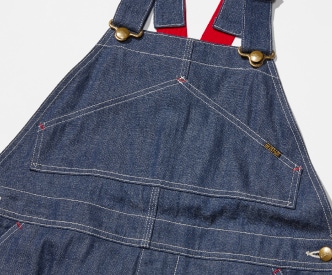 胸当ての台形ポケットはヴィンテージのオーバーオールに見られるディテールです。