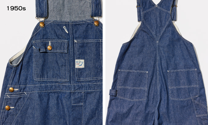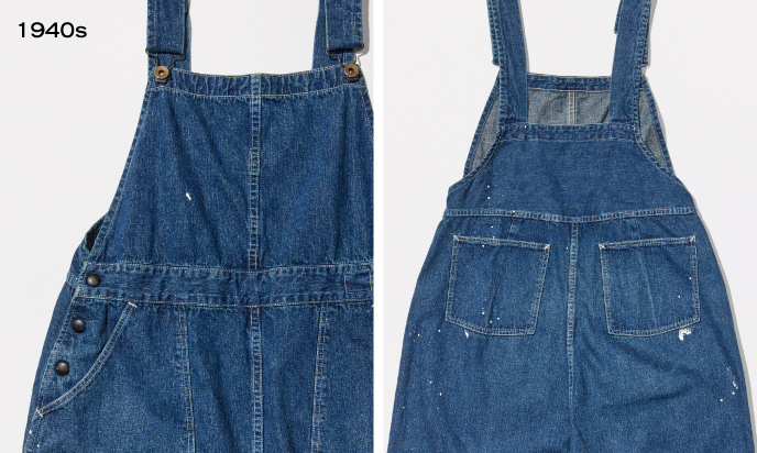 BACK: These backless overalls were common in the 1940s. This model has a simple, solid look as the original product was designed during World War 2.