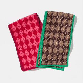 This scarf looks cute with the small argyle diamonds. A bit off topic, but the original argyle pattern was designed as the tartan for a Scottish clan. It is said that BROOKS BROTHERS popularized it. No wonder the pattern matches perfectly well with American Casual looks.