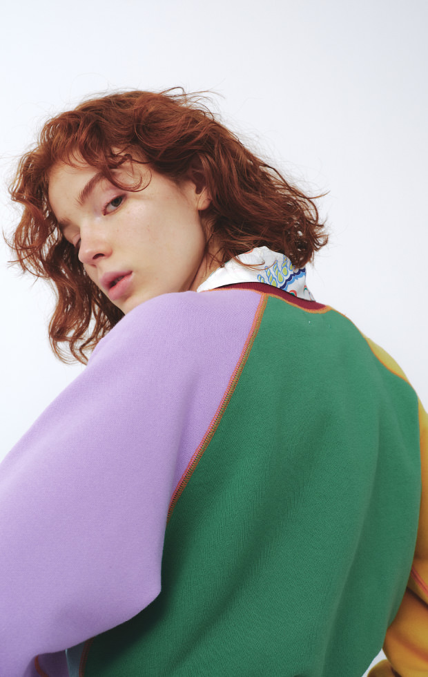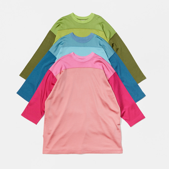 FADE PURPLE: パープルのカットソーを着込んで色落ちしたような、淡くて青みのあるパープル。〈ウエアハウス〉に今シーズン別注しているフットボールTシャツをイメージしました。