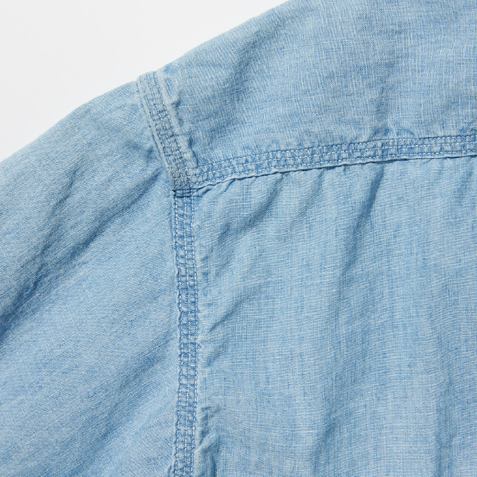 CHAMBRAY BLUE: 定番の〈バズリクソンズ〉に別注している定番のシャンブレーシャツをターゲットに色を決定。タテ糸にブルー、ヨコ糸にホワイトを使った生地の特徴を活かし、白みがかったライトブルーに。春夏に爽やかに塗って欲しい!