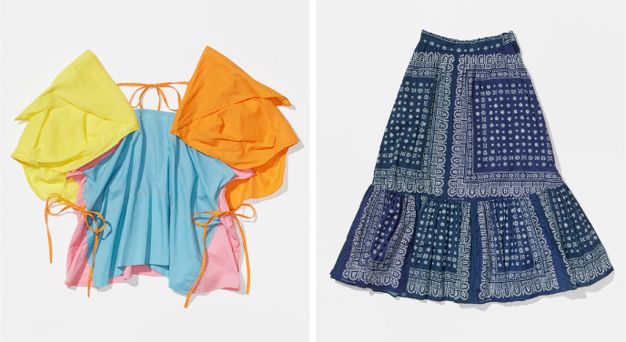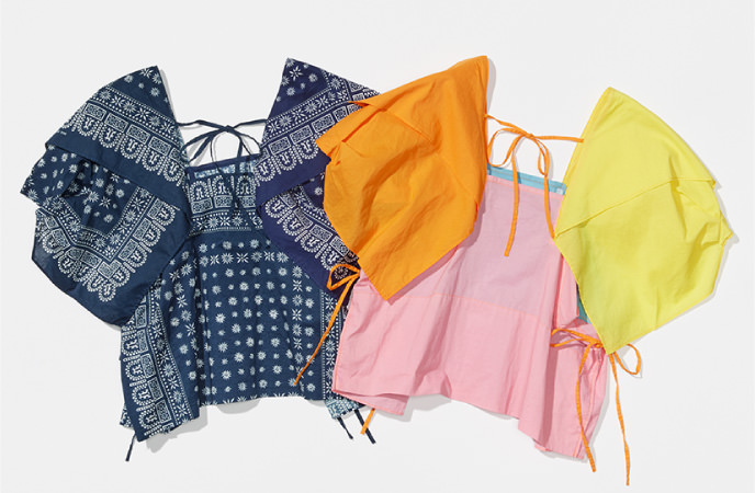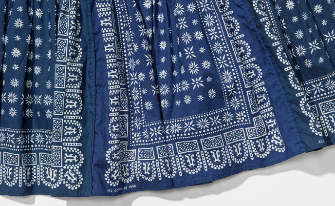 バンダナを着てしまおう!毎日欠かさずにバンダナを持ち歩く私たちですが、その愛があまりに強すぎて、ついに洋服を作るまで辿り着いてしまいました。初の試みとなる今回は、ブラウスとスカートの2型。バンダナをリメイクした古着から着想を得ていますが、ただリメイク風にするのではなく、オリジナル柄のバンダナを一から作り、それをきちんと洋服として成立するように組み合わせていくという、実際のリメイクのような手法を取り入れました。色展開は、バンダナの退色の過程をイメージして4段階に濃度や色味を変えたネイビーバンダナの微配色クレイジーの他に、無地のハンカチを用いたマルチカラーを用意。私たちのバンダナ愛をたっぷり詰め込んだ、まさにBOYらしい仕上がりです。