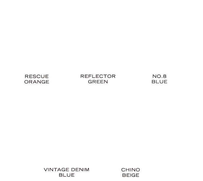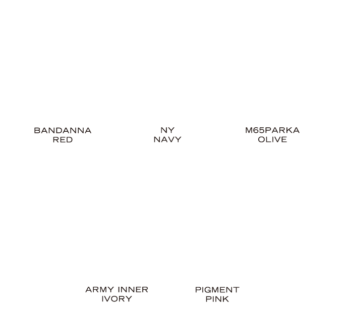 RESCUE ORANGE: 1960年代初頭の中期型MA-1のライニングにも使われていた鮮やかなオレンジをイメージ。ミリタリーのコーディネートにおすすめです。反戦の意味を込めて、ヒッピースタイルにも相性よし。