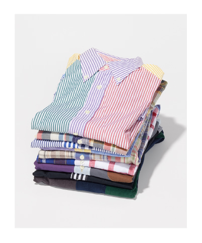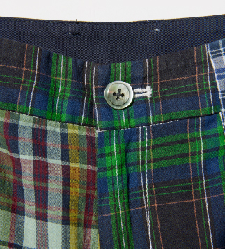 The definition of a crazy pattern is a patchwork of various colors and fabrics created by combining remnants into a design. As the story goes, on a visit to a shirt factory, Ash Wall, the legendary Brooks Brothers vice president, saw new employees cobbling together scraps as part of the training to perfect their sewing technique for stitching together color polo shirts. He commented that the shirts were fun. This led to their production and this famous fable known throughout the apparel industry.