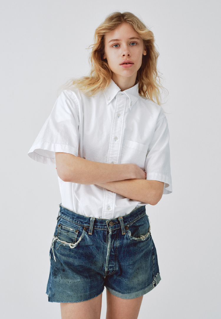 The button-down shirt, or as it is affectionately known the B.D. shirt, has always been a BOY standard. While we hadn’t designed one for our spring/summer collections in recent years, we did resolve to go back-to-basics and came up with a short-sleeve version. The B.D. shirt is the core of American traditional essentials. It was the grandson of Brooks Brothers’ founder who seized upon this shirt while watching a polo match on a visit to England. He noticed the players would button down the collar points on their uniform to stop them from flapping in the wind and interfering with their play. That’s where the idea for the button-down shirt came from. This all-around shirt goes with everything. A washed-out B.D. shirt can even be worn without ironing and be a part of your daily selection. The B.D. shirt quality, which we focused on in particular, is the sizing. When our bible “TAKE IVY” was published, the 1960s was a time when brands didn’t make B.D. shirts for women. So, at that time, they had to be particularly adept at wearing men’s B.D. shirts in a manner that matched their own particular fashion style. In consideration of that admirable history, we made ours a little big. The B.D. shirt is a basic item for BOY as we got our start crafting pieces that embraced men’s clothing yet were tapered to our size. Its simplicity is precisely what makes this an essential part of any wardrobe. Everyone who wears one will give it their own personal touch.