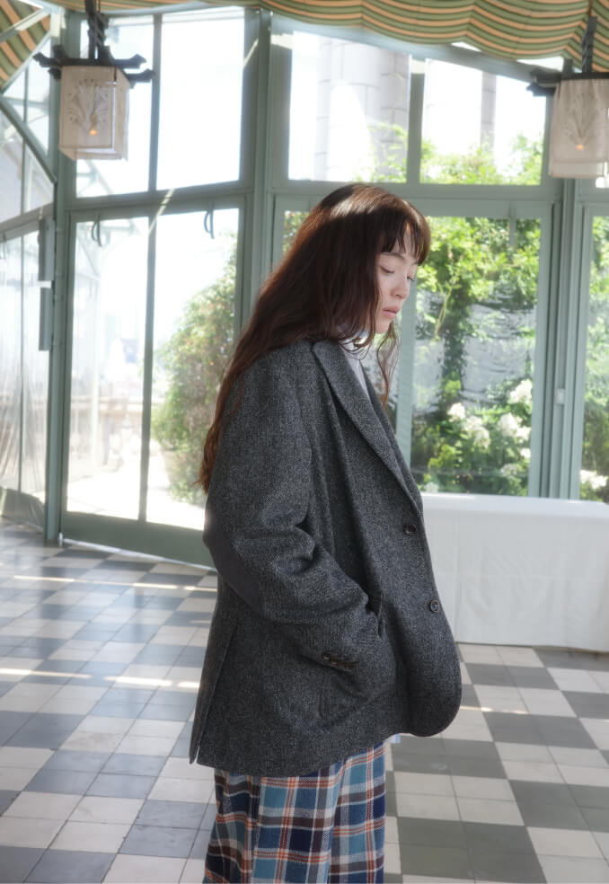 今まで何度も観てきた『アニー・ホール』。ウッディ・アレン演じるアルビーのスタイルに影響を受けてきた私たちは、ツイードジャケットの着こなしも会得済み。B.D.シャツの第一ボタンを開ける細かい癖もしっかり意識。チノパンをチェックパンツに変え、〈BEAMS BOY〉流の解釈に。