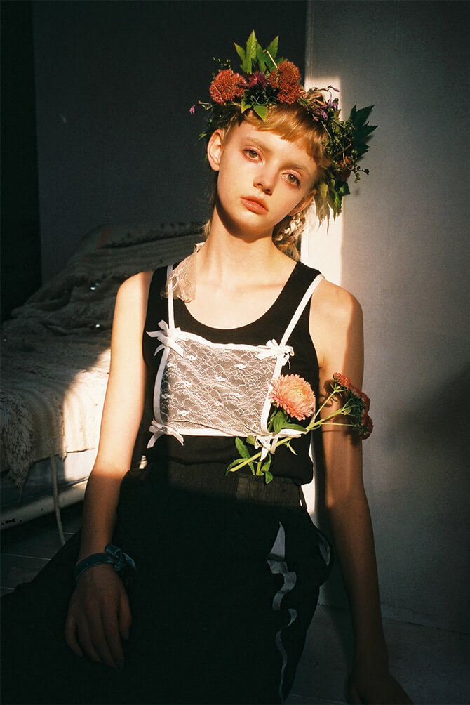 レースゼッケンのタンクトップ Tank top with lace race bib TANK TOP / ¥9,500+tax SKIRT / ¥28,000+tax PREV NEXT Collection list