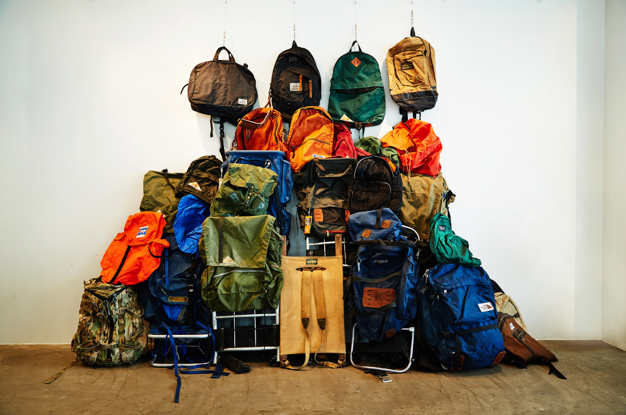 “Having said that, many hippies still used big backpacks with aluminum frames to seclude themselves in the mountains. From the end of the 1970s to the 1980s, however, backpacks with external frames gradually disappeared from the market because inner-frame designs made the product much lighter. I was around 20 in the mid-1980s and still vividly remember MILLET’s red inner-frame backpack I bought at Green Life Sports (closed in 2011) in Kanda around that time. Carrying the backpack, I used to go camping and visit my family in Kyushu by local trains with a youth rail pass. Though duffel bags and barrel bags might be more popular as a large travelling bag at that time, I often visit stores like A&F in Shin-okubo, Sakaiya Sports in Jinbocho and some retailers in Ueno to look for a backpack as a hippie and outdoor admirer.”