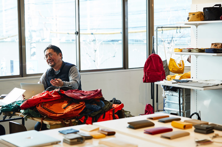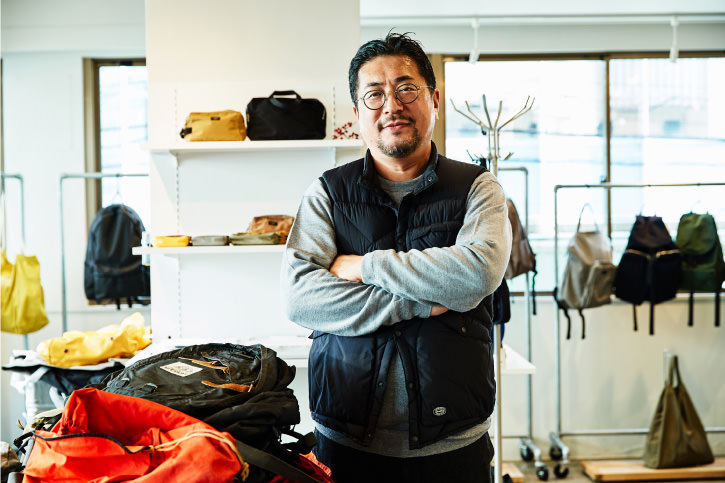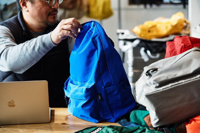 “Looking back the history of backpacks, we realize that the product has altered its appearance according to the change of our lifestyle since the product was first invented as an everyday tool. We, too, update backpacks we designed for STANDARD SUPPLY every season by, for example, changing the zip design or adding pull rings and extra reinforcements. Since cashless payment methods were introduced, smaller bags like a musette bag have been a trend in Japan because we no longer need to bring many things with us to go out. But the top-selling bag of STANDARD SUPPLY is in a larger size that can fit A4 documents and files. I guess that’s because city commuters need to stow their business documents and laptops in their backpacks. There are now so many design options for backpacks to choose from. Although the prevailing design has long been in teardrop shapes, the contents often get creases in the corners. My solution for this problem is to make square-shaped backpacks, but I think I still have plenty of work to do to make the design more attractive and acceptable. My will as a bag designer has always been to design innovative bags with materials and styles that align with the trends of the times.”