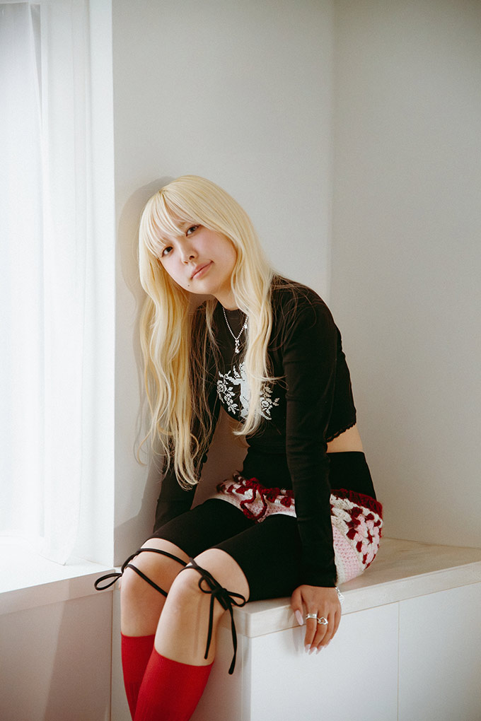 その日のコーディネートをよくSNSに投稿しているんですけど、いざ撮影するときに「ちょっと色合わせが違うかも…」と思うことがよくあって。そんなときのために、自分で編んだシュシュを入れてよく持ち歩いています。