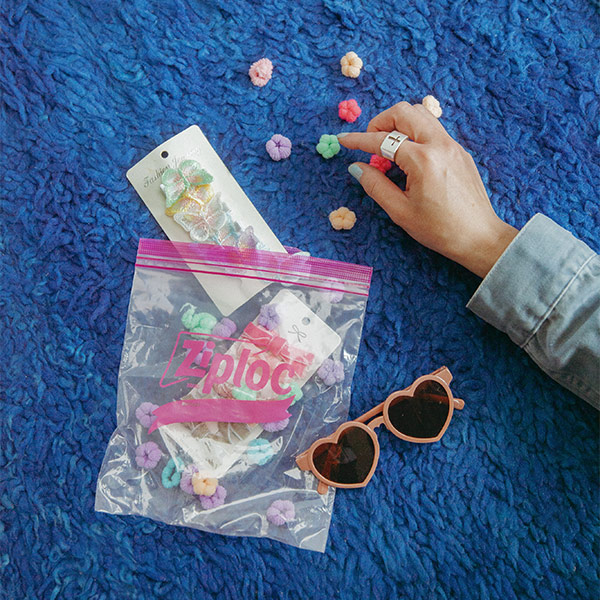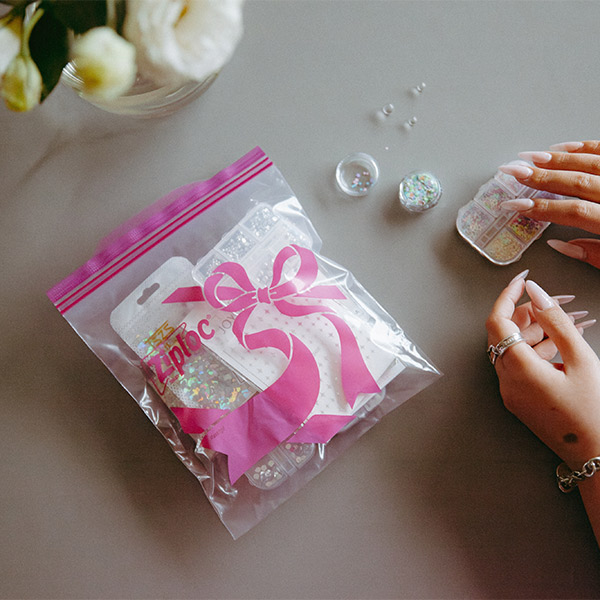 “ちゃんとしたギフト”じゃなくていい。旅先で見つけた小物も、日々のふとした「これ、あの子好きそう!」も、〈Ziploc® Ribbon〉にポンと入れるだけで、もうプレゼント。リボンのイラスト箇所にひと言メッセージを添えれば気持ちも伝わるし、中身が透けて見えるのもかわいい。買って、詰めて、できあがり。気負わず渡せて、“贈ること”がもっと楽しくなる!