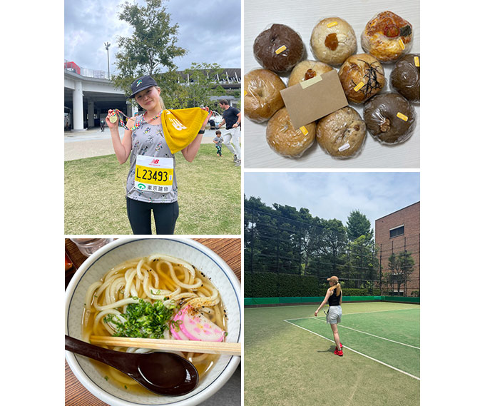 昔からとにかく体を動かすことが好きで、テニスはずっと続けているスポーツのひとつ。時間があればジムに通ってウエイトトレーニングをしたり、最近ではハーフマラソンにチャレンジ!無事完走することができました◎