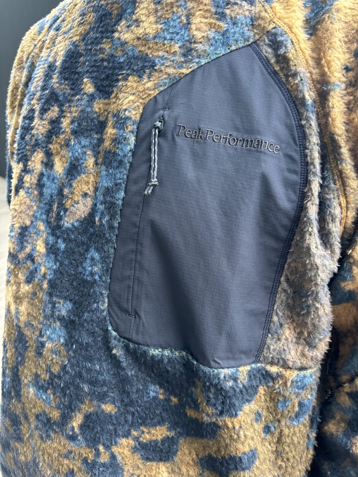 POLARTEC Alpha Directにカモフラージュ風のグラフィックをプリント。