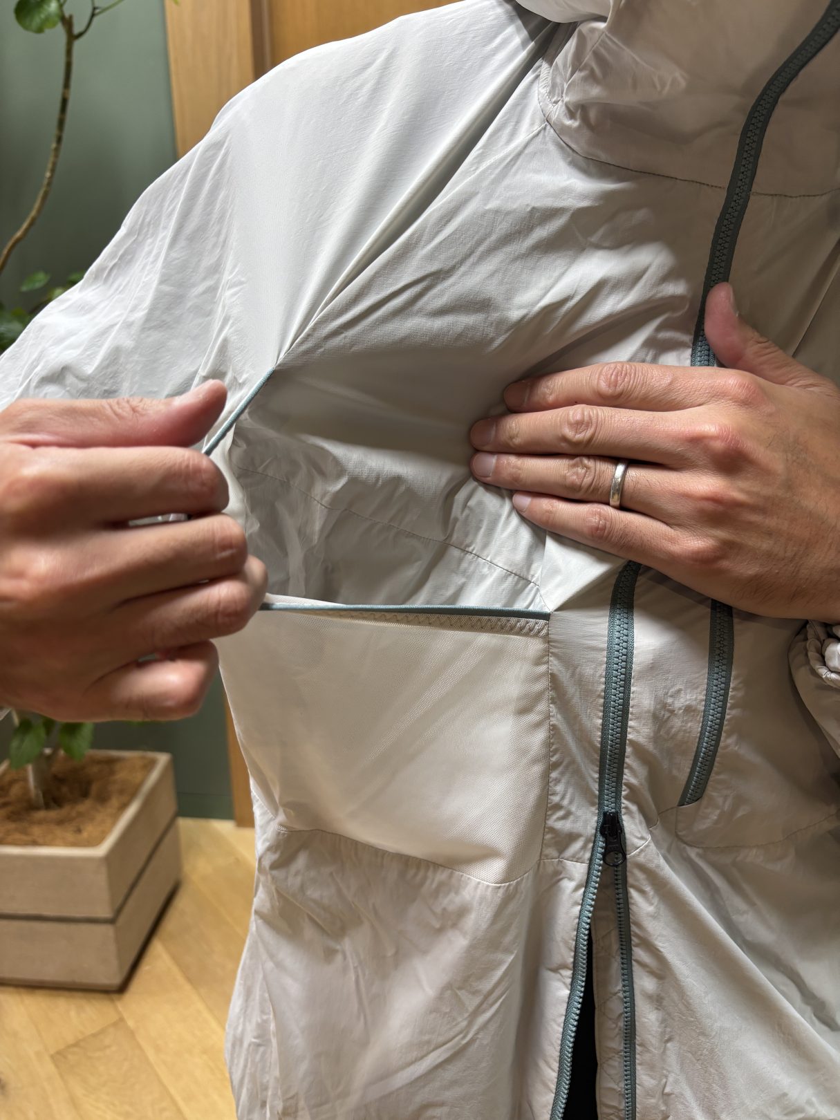 こちらもアルファダイレクトをライニングしている、暖かくて軽いライトアウター。