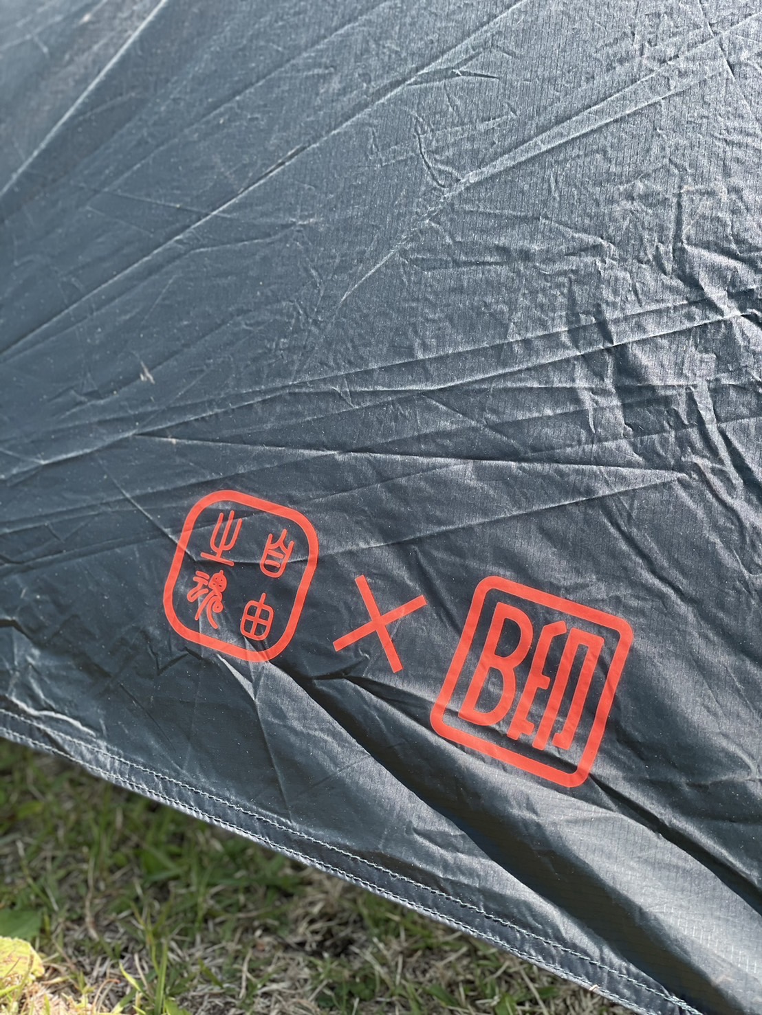 前後の入り口左側に、オリジナルにはない「自由之魂」のロゴと、別注の証でもある「B印」のロゴを施しました。デザートイエローモデルには、シックで落ち着いたブラックロゴ、ディープブルーモデルにはポールのカラーに合うように、ビームスカラーであるオレンジロゴをチョイス。