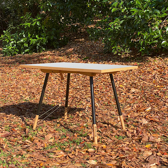 メラミン化粧板を使用した天板から脚部分の、ロープ(パラコード)を使用した洗練されたデザインにも一目惚れしたことは言うまでもありません。