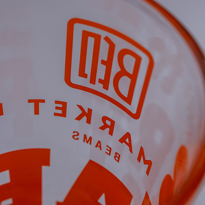 正面には「B印MARKET BEAMS」のロゴを、サイドには小さく「TARPtoTARP」のロゴを配しました。