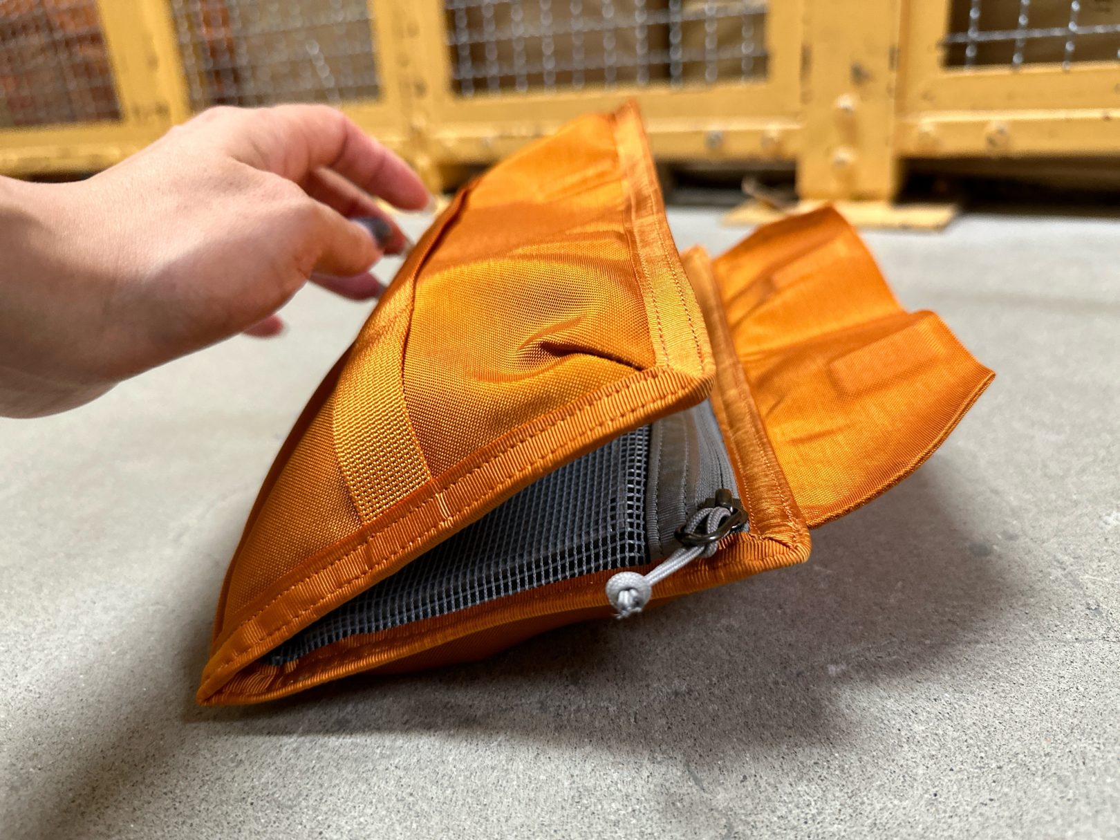 ただ右側はメッシュ側の前面ポケットに上下仕切りがあり、さきほどサイズ感をお見せした画像のように、手鏡ぐらいのものを前面下部にいれる事ができます!