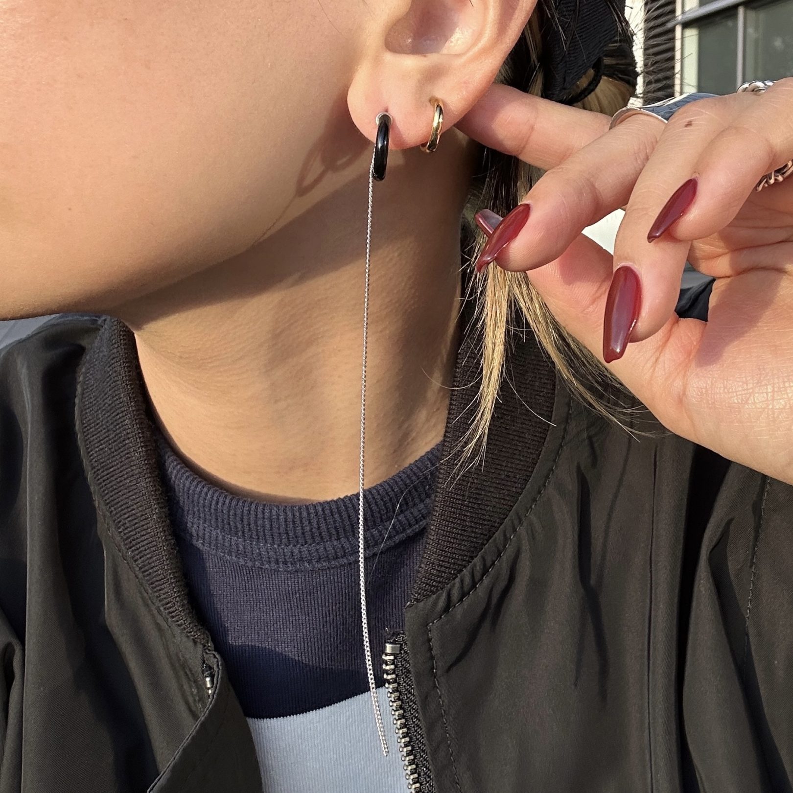 以前ご紹介したフープのピアスもつけたくて、