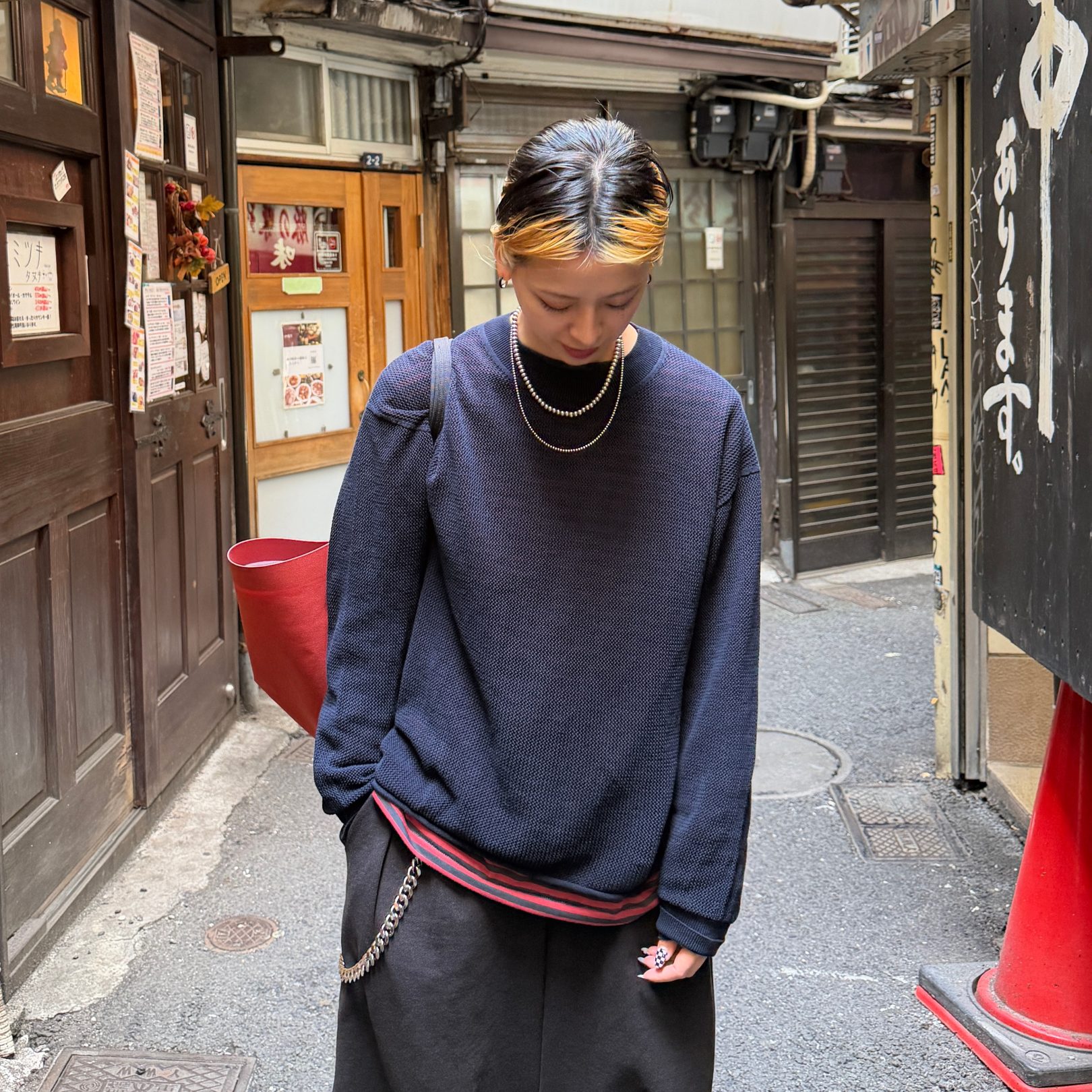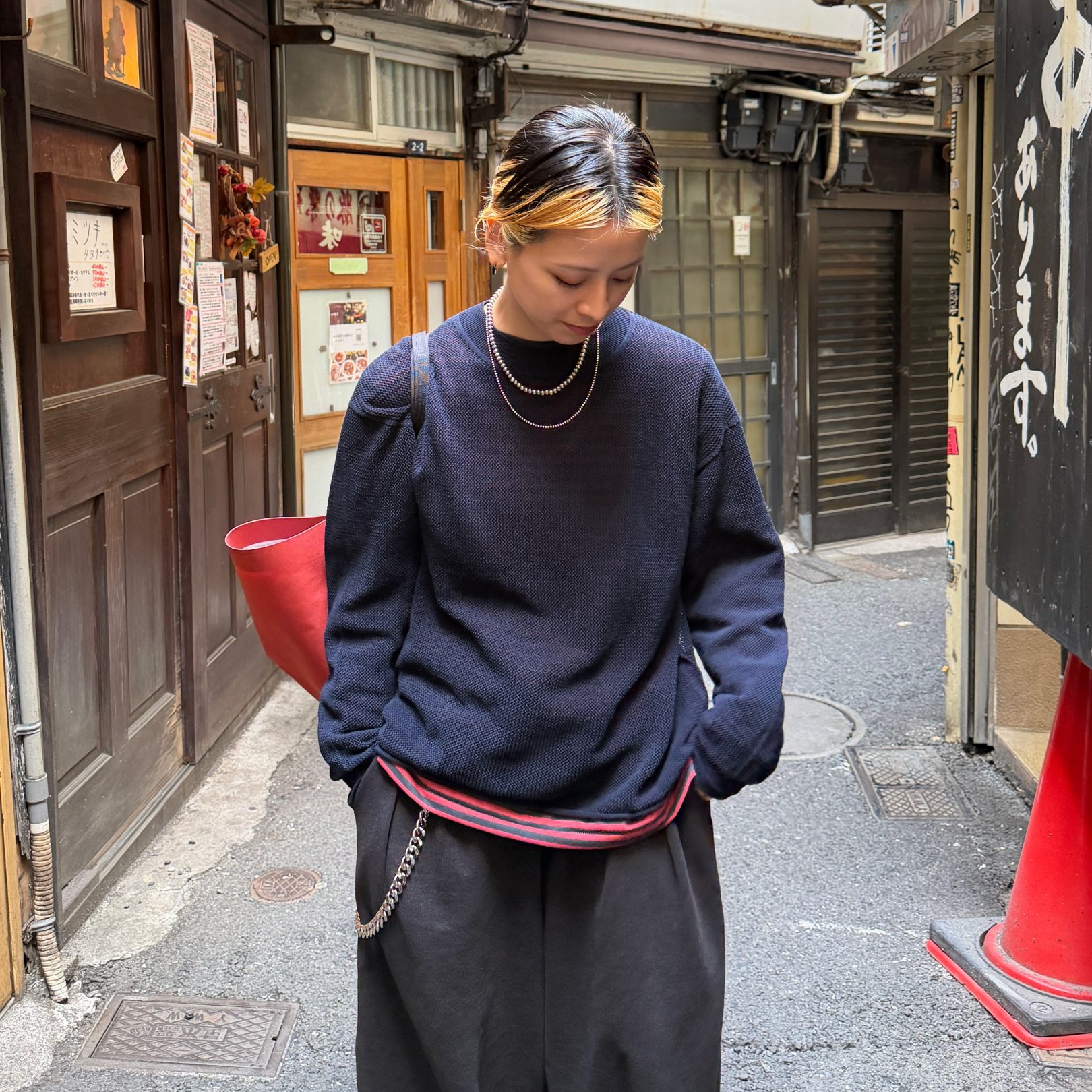 透け感のあるニットですが、ネイビーはダークトーンと重ねれば、そこまで気になる感じでもなかったです。