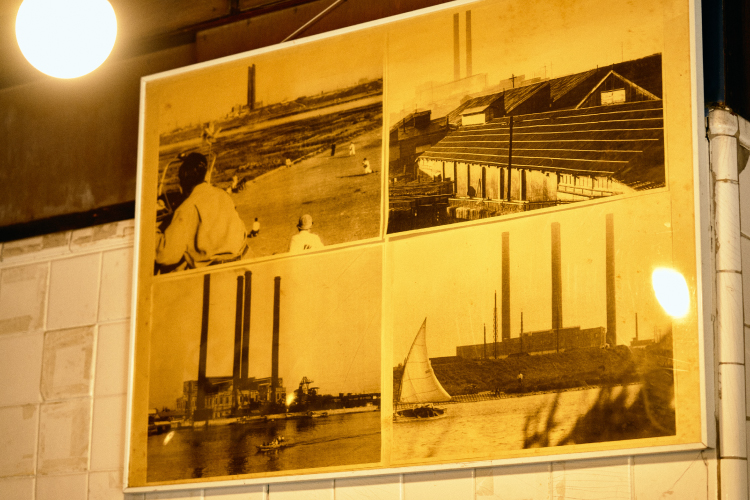 北千住の歴史を伝える展示もされている。戦後間もなく撮影された写真なども。これは、通称「お化け煙突」。