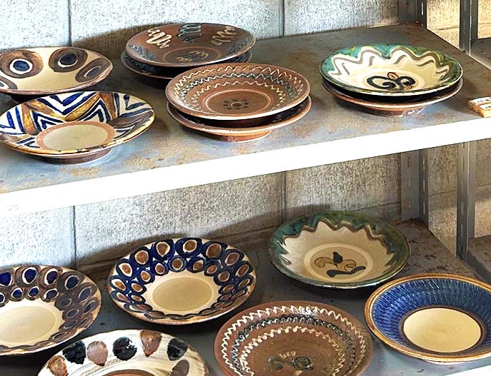 やんばるの自然と伝統が息づく大宜味村の森の中に佇む「田村窯」。田村さんが作るやちむんは、沖縄の土の温もりと力強さを感じさせながらも、どこか現代の暮らしにすっと馴染むデザインが魅力。直販もあるのでお土産にどうぞ。