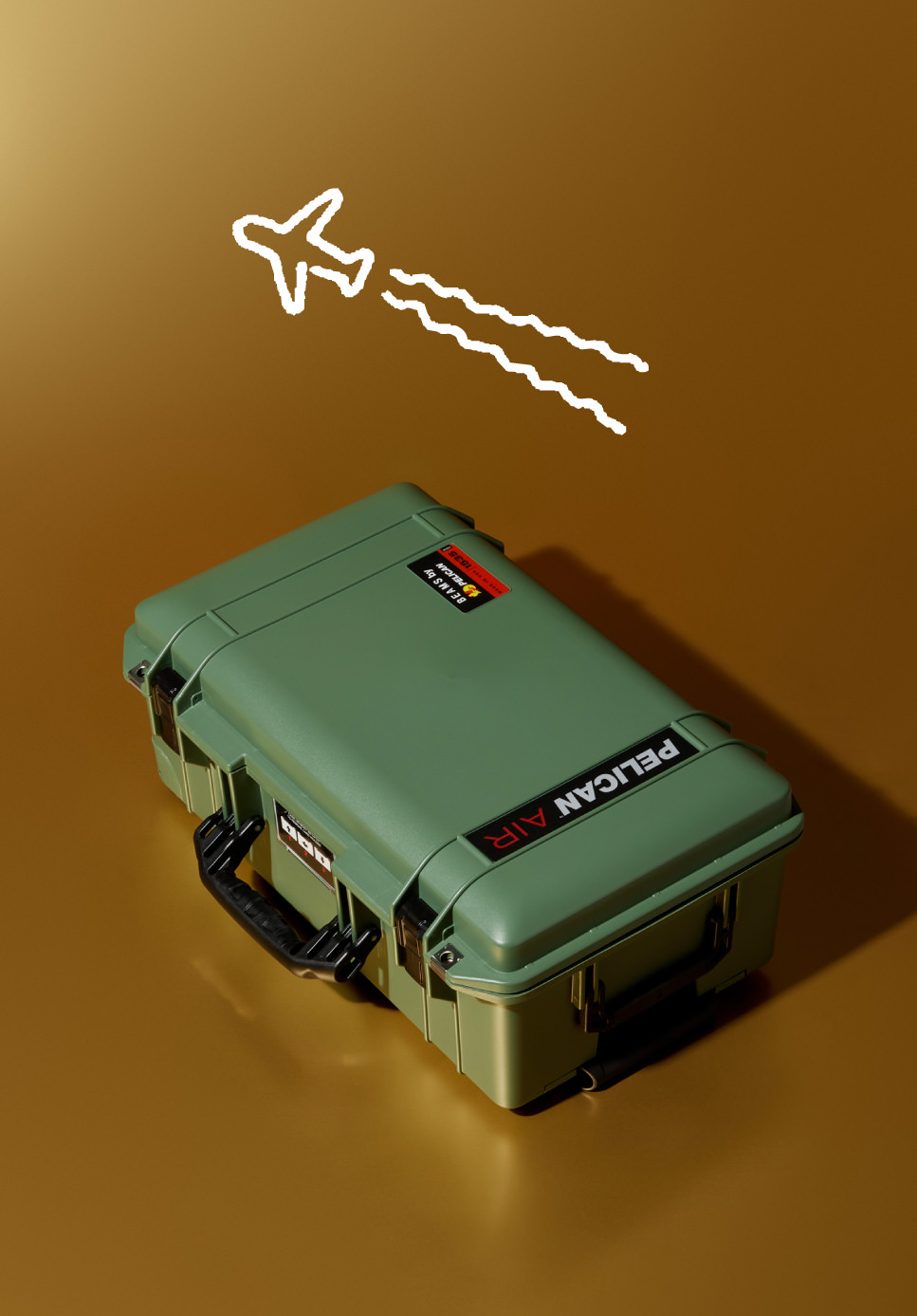 実はコロナ真っ只中の2020年から企画していた商品。絶対にアフターコロナにトラベルは盛り上がるはず。そんな中、空港のゲートで他人のスーツケースと被らない、最強にタフってのをキーワードに軍事機器や撮影機材などの運搬にプロから絶大なる信頼を得ているPELICANに別注させて頂きました。ミリタリーモチーフのカラーだけど、四葉のクローバーと名前がついたカラー名がピースフルなのがバイヤー一押しポイント。