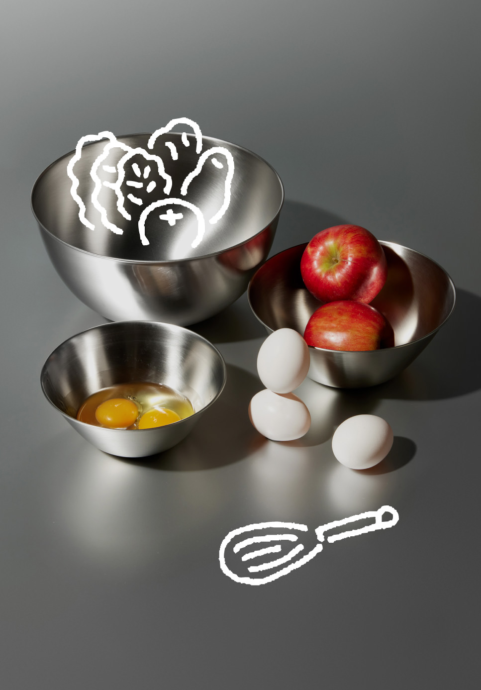数あるキッチングッズの中でもこのステンレスボウルの良さはまずそのデザインの美しさ。コロンと丸い形が愛らしく、置いてあっても様になる、そんな存在感があります。