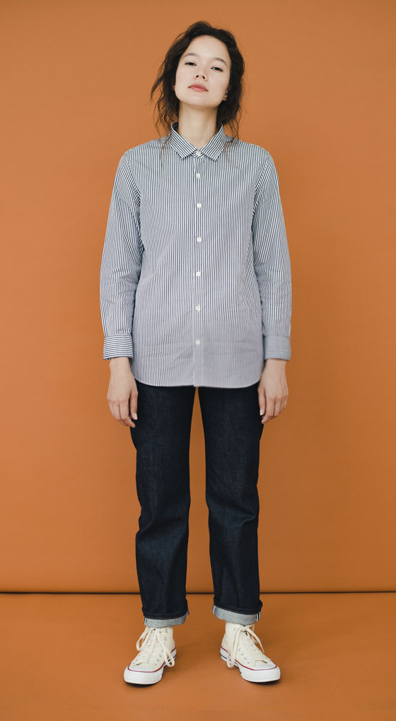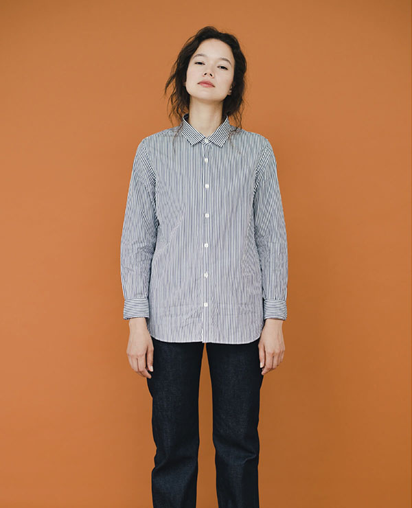 有名メゾンブランドの製作も手掛ける、歴史の長いドレスシャツ工場にオーダー。細番手の糸で織られた柔らかなブロード生地に“形態安定加工”を施すことで、常にサラッとしたハリのある質感に。また、2020年秋冬シーズンから肩幅と身幅を大きくしてリニューアル。女性らしく、胸のポケットをなくしてすっきりとした仕上がりに。程よくゆったりとしたボックスシルエットは今の空気感とも絶妙にマッチする。