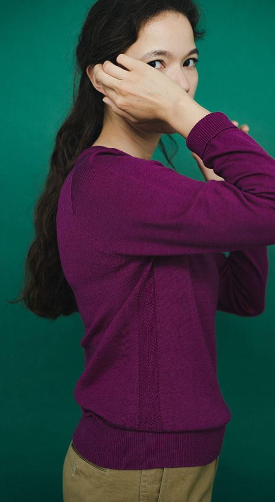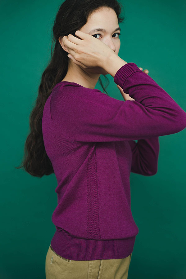 コットン・レーヨン・シルクという3つの素材をブレンドすることで、滑らかな手触りと美しい光沢感を両立。女性らしさを演出する上質な素材を使った、ショートスリーブタイプのハイゲージニットをデザイン。縫い目のない“ホールガーメント製法”により、縫い代が肌に当たることなくソフトな着心地を約束。鮮やかなカラーリングだけでなく、シックなコーディネートにも溶け込む落ち着いた配色もラインナップ。