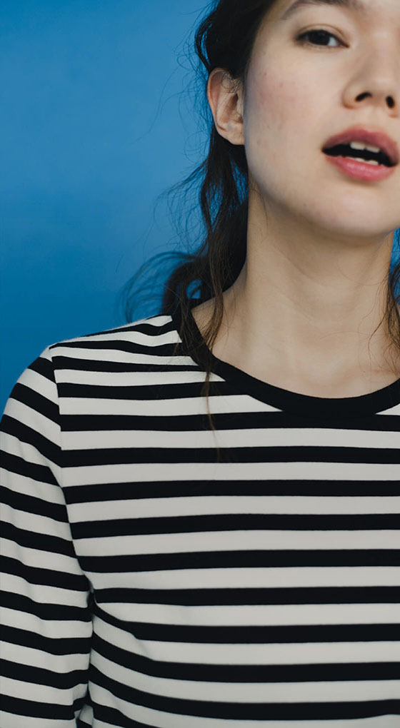 いつもクローゼットに置いておきたいベーシックなボーダーカットソー。品の良いクラシックなピッチ幅で、いつの時代も色褪せないモノトーンな配色に。詰まりすぎず緩すぎないネック部分が女性らしさを演出してくれる。目が詰まったオリジナルの天竺コットンで気品のあるデザインに。