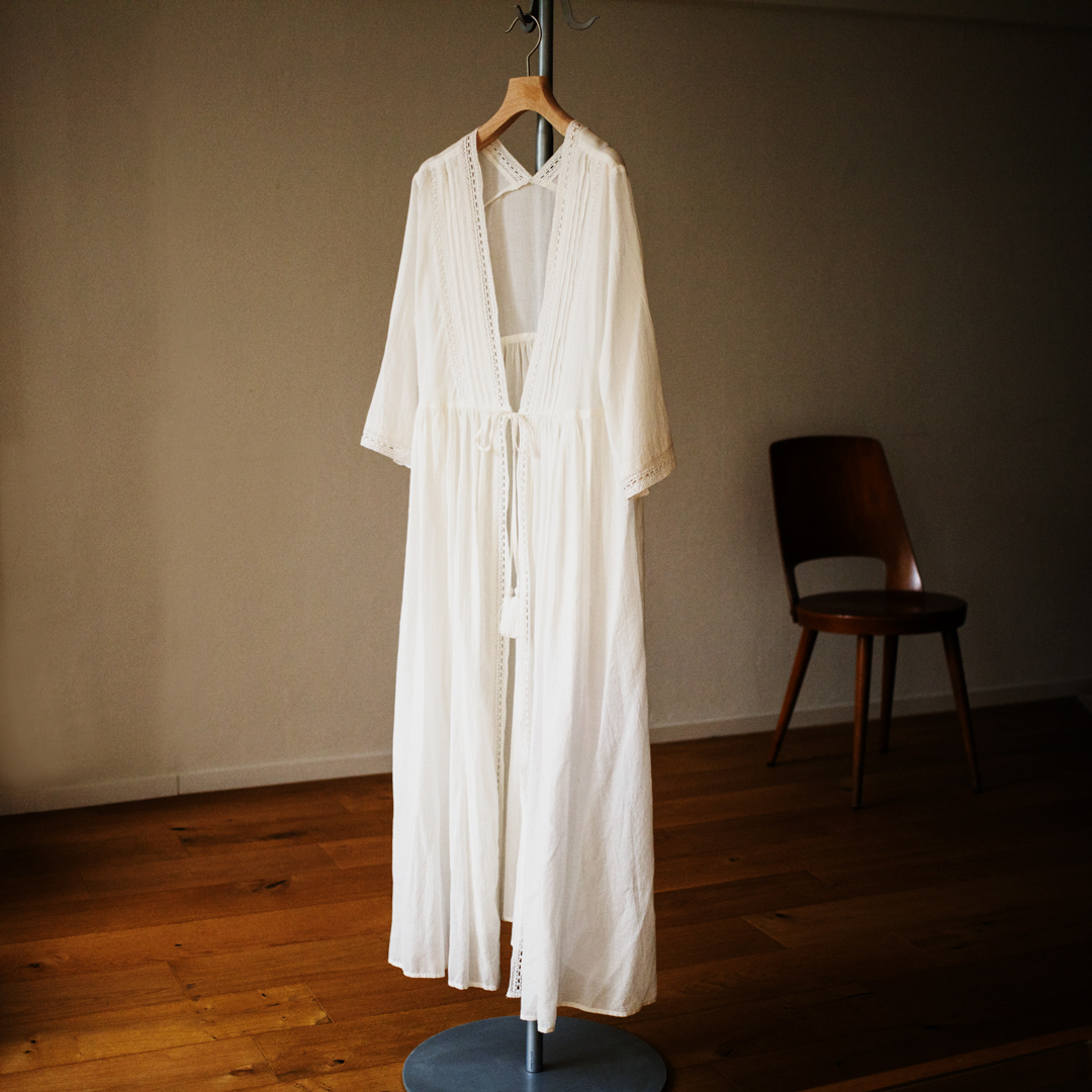 気軽に羽織れるノーカラーのガウンをママとお揃いで