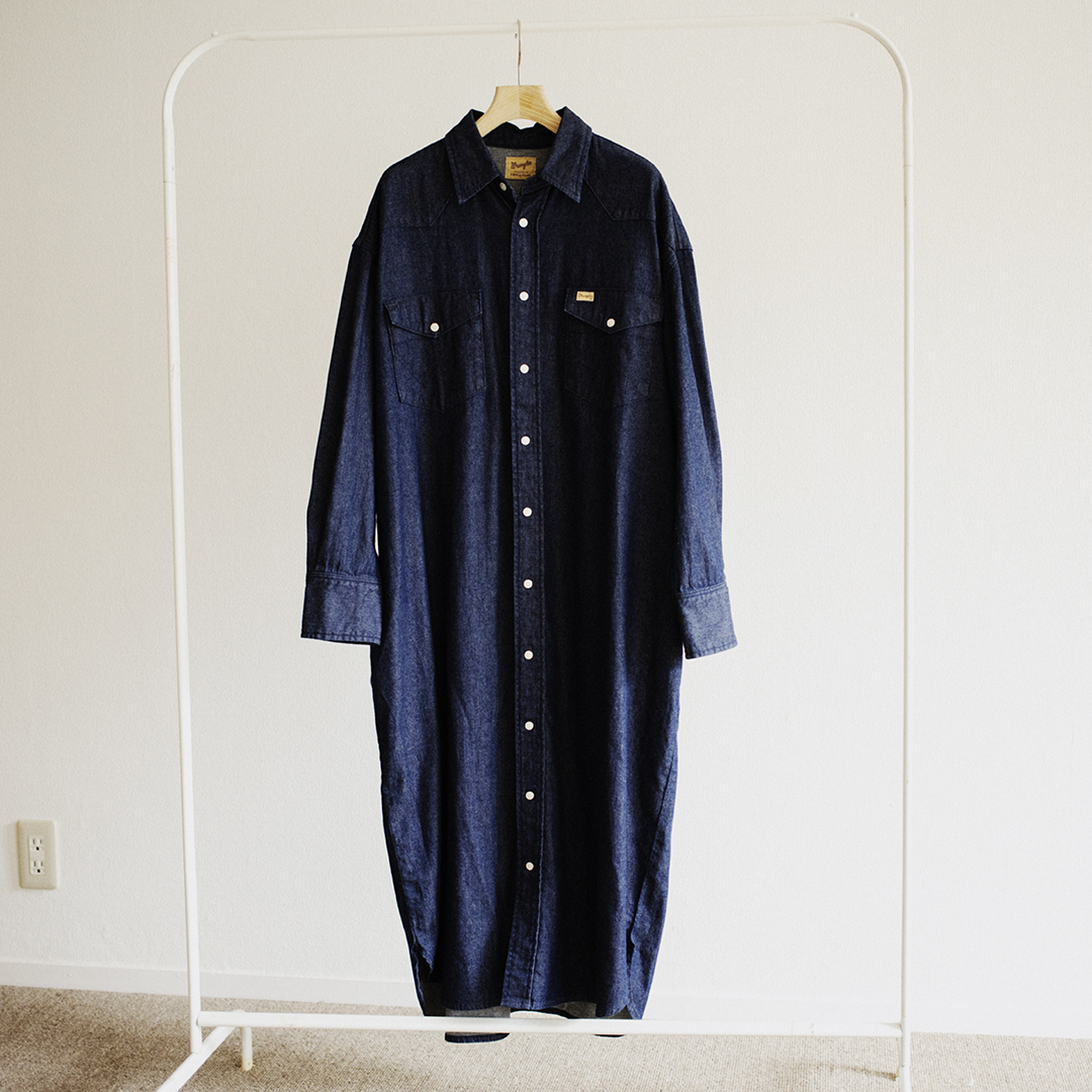 ワンピース感覚でルーズに着る、デニムシャツ