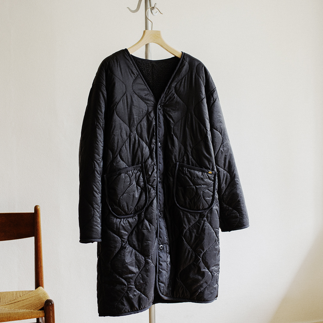 マットな質感が上品な、大人のためのキルティングコート
