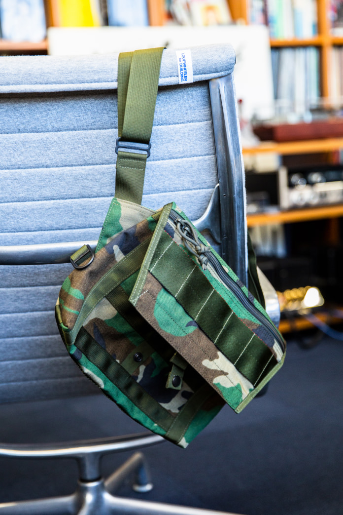 「いえ、<BRIEFING>はいくつか所有していますが、このフリートメッセンジャーは初めてです。このサイズ感がいいですよね。平日だけでなく、休日もバッグを持ち歩くことが多いんですが、休日はこの大きさが僕的にはベスト。あとはやっぱりこの迷彩柄ですよね。僕自身、シンプルな服が多いので、コーディネートのポイントになりますよね」