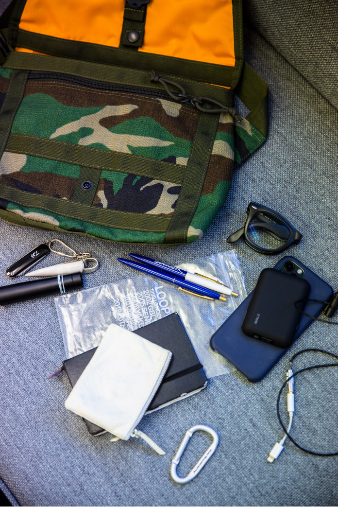 「財布とカメラ、そしてモバイルバッテリーを常に収納しています。バッテリーマニアである僕が普段持ち歩いてるのはモバイルとは言い難い巨大なバッテリーなんですが(笑)、そんな大きなサイズも綺麗に収ります」