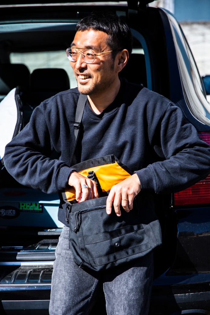 「いえ、これが初めてです。<BRIEFING>自体は何個か所有しているんですが、使い勝手がいいからか、妻に奪われることが多くて…。このフリートメッセンジャーは仕事だけでなく、サーフィンへ行く時にもちょうどいいサイズ感ですね。サコッシュだと物足りないし、かといってメッセンジャーバッグだとちょっと大きすぎたりするので、色々なシーンで重宝しそうです」